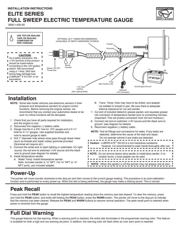 - Gauge Kit Includes 1/8 in. NPT Temperature Sender; 3/8 in. And 1/2 in. NPT Adapters
