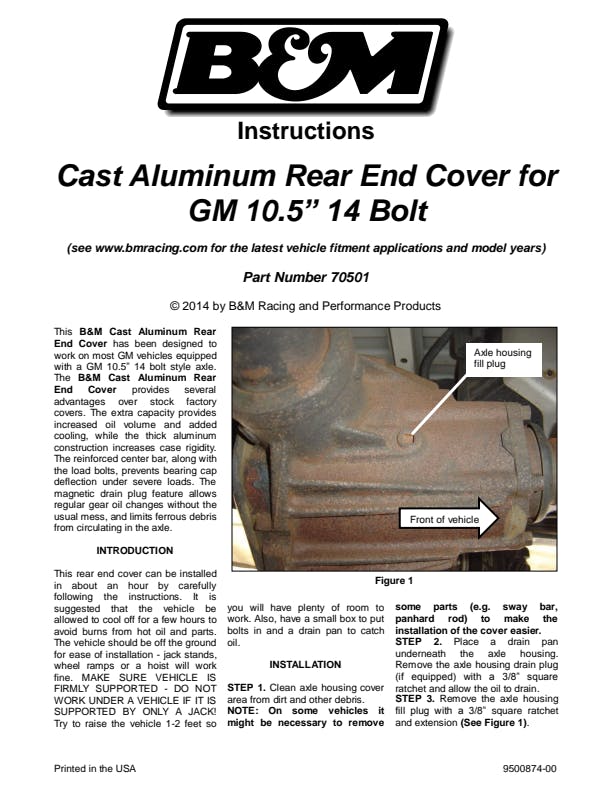 Designed to fit most vehicles with a GM Corporate 14-bolt differential (10.5-inch) however vehicles may have other interfering components that may require modifications or moving of existing brackets, require longer cover bolts or different cover bolts, clearance of sway bars etc. - Checking for adequate clearance and fitment for your application should be verified prior to purchase & installation. Refer to ID guide and measurement drawings for specifications.Application Summary: