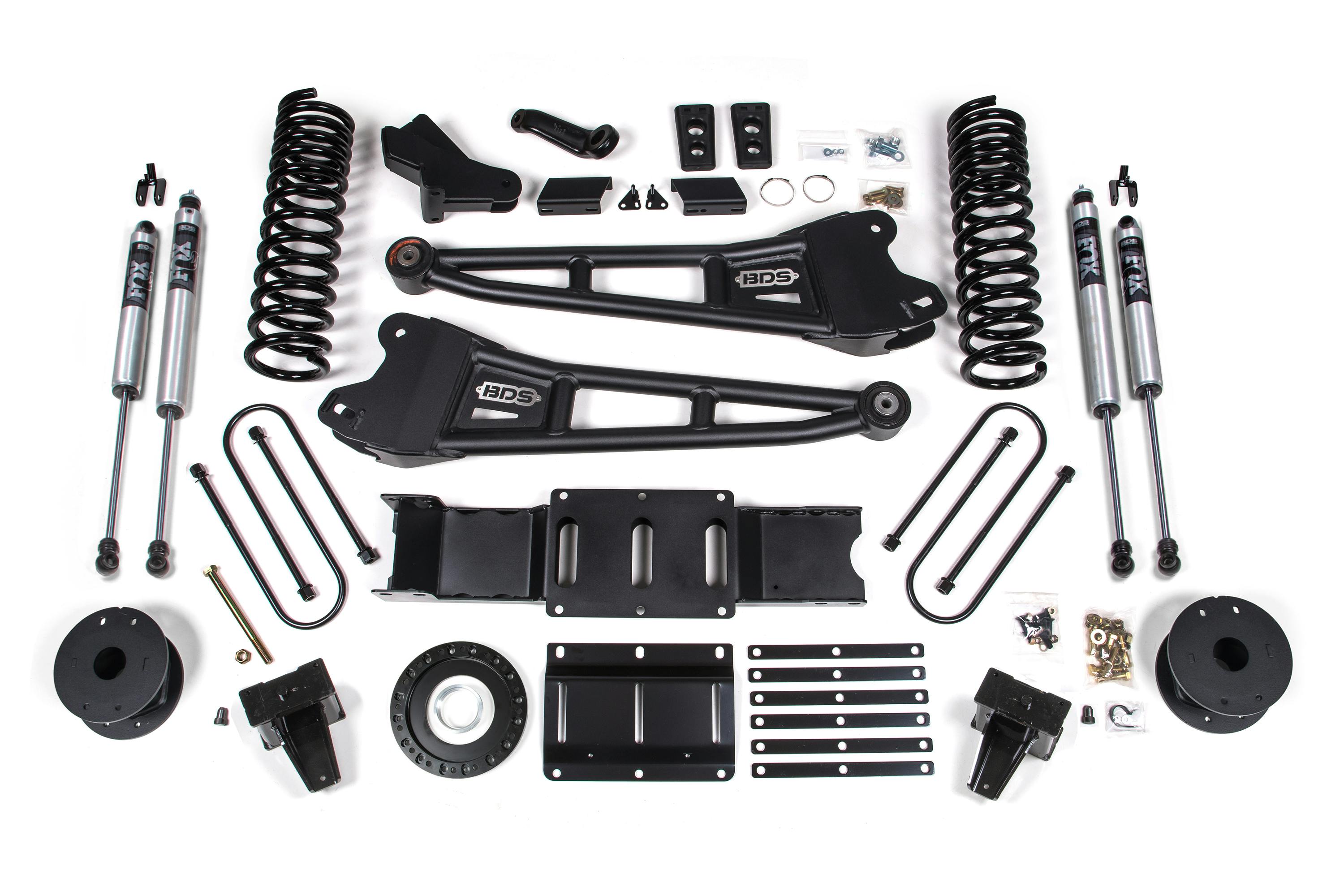 Raise your diesel powered RAM 3500 with factory rear air bags truck to next heights with this 6-inch radius arm lift kit from BDS Suspension. Designed to improve stance, performance, and capability, this kit includes everything necessary to set your truck up right with clearance for up to 37" tires.
