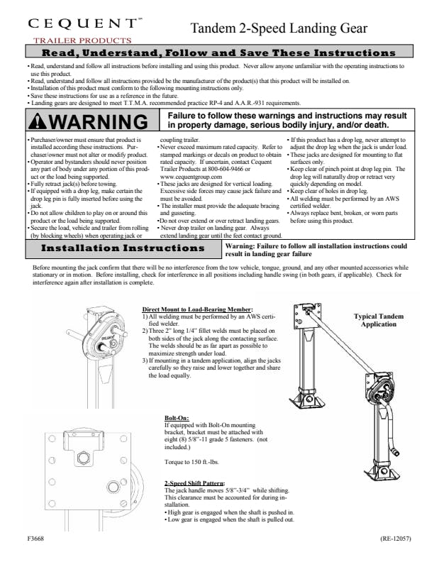 - HD 2-Speed Tandem Landing Gear