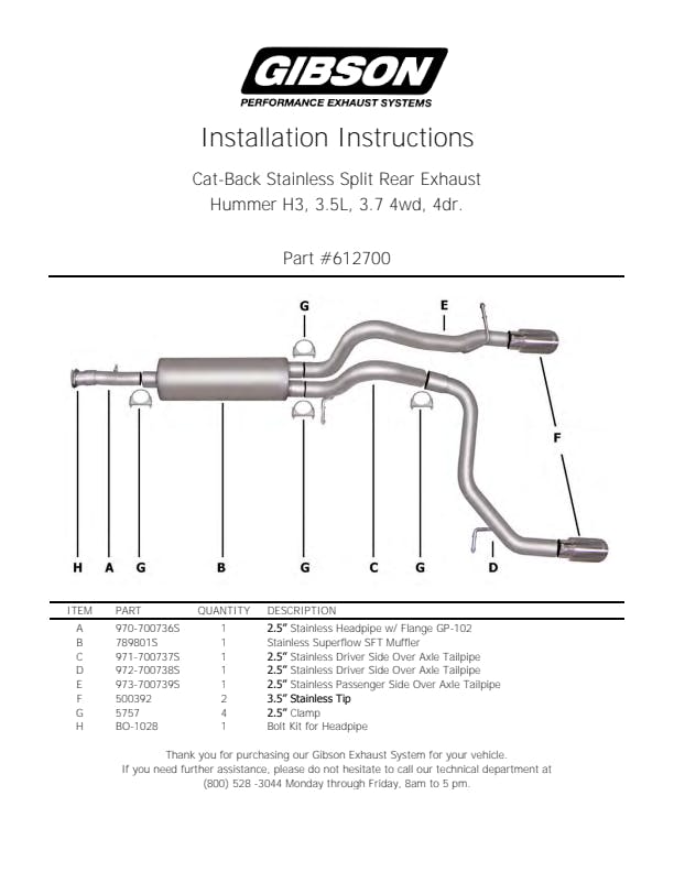 For the enthusiast who wants an awesome look and aggressive throaty sound this Dual Split Cat back exhaust is for you. Gibson Exhaust Systems decrease backpressure and produce more torque and increased horsepower. Typical gains average of 15-20 horsepower. Stainless dual Tip exit straight out the back. Works with most bumpers, roll pans and trailer hitches. Exhaust sound is louder under towing conditions. Hassle Free bolt- on installation. No welding required. Backed by a Lifetime Limited Warranty.