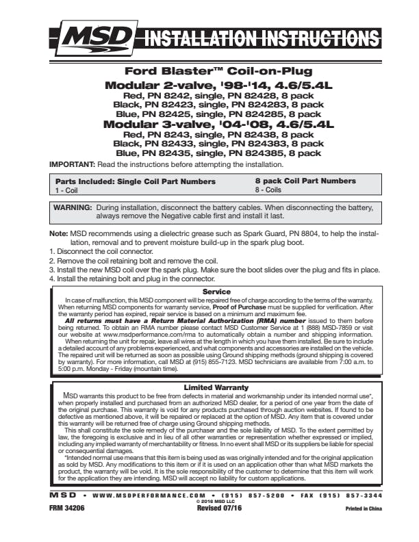 Look no further when it's time to tune up your Ford Mod Motor. Bolt on legendary ignition performance with MSD's direct replacement coils. Reliable parts from the ignition leader at a price that won't break the bank.