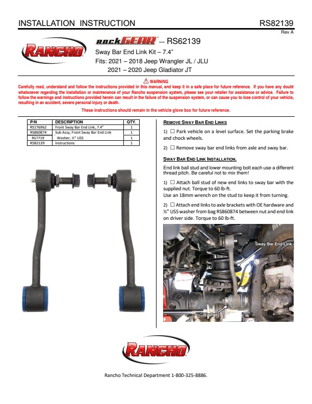 - BUY WITH CONFIDENCE -- Comes with Rancho’s limited lifetime warranty