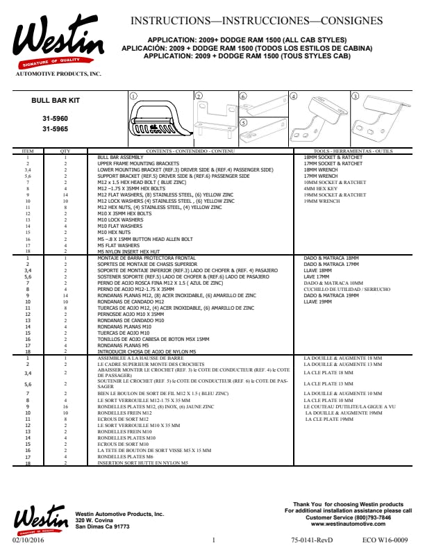 Westin 31-5960 E-Series Bull Bar fits 2009-2018 2019-2024 Ram 1500 Ram 1500 Classic (Exc Rebel & Warlock) Stainless Steel |